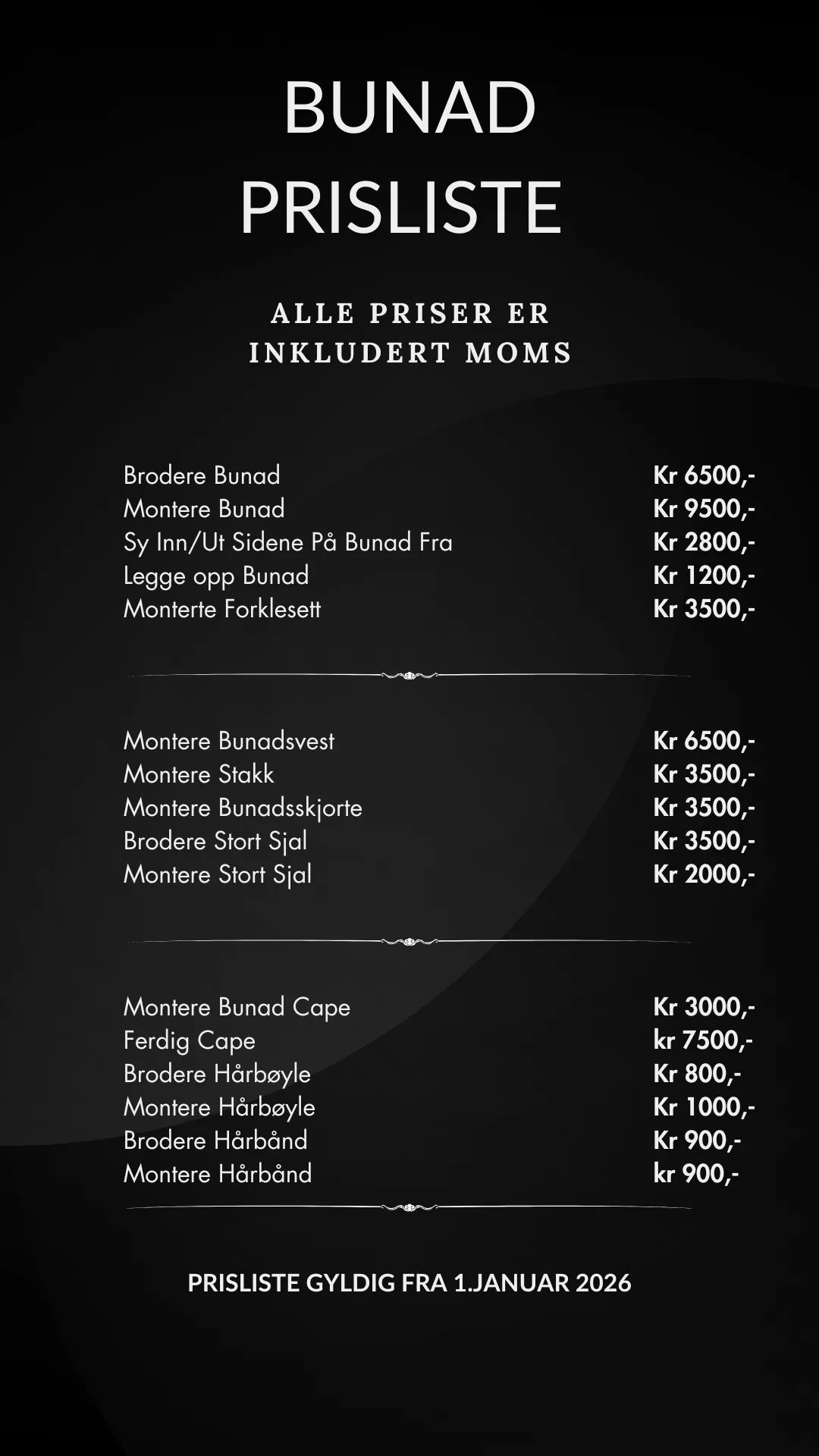 Utforsk den tidløse tradisjonen med Rogaland bunader til en overkommelig pris! Hos Fatimahs Systue tilbyr vi komplette håndbroderte bunader fra kun kr 28 999,- inkl bomull bunadsskjorte. Vi forstår viktigheten av å kombinere kvalitet og konkurransedyktige priser, slik at du kan bære din kulturarv med stolthet uten å overskride budsjettet. Utforsk vårt omfattende utvalg av farger og design, og invester i en fullstendig bunad som er like prisgunstig som den er vakker. Velkommen til en verden av autentisk håndverk og rimelige tradisjoner.